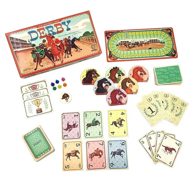 Derby ist bei Maldón veröffentlich worden, stammt aber von externen Autoren, nämlich von Benjamin Campos und Adam Swan. Fünf Pferderennen werden ausgetragen, und es geht darum, durch geschicktes Wetten und natürlich durch Einflussnahme auf das Rennen am Ende am erfolgreichsten zu sein.