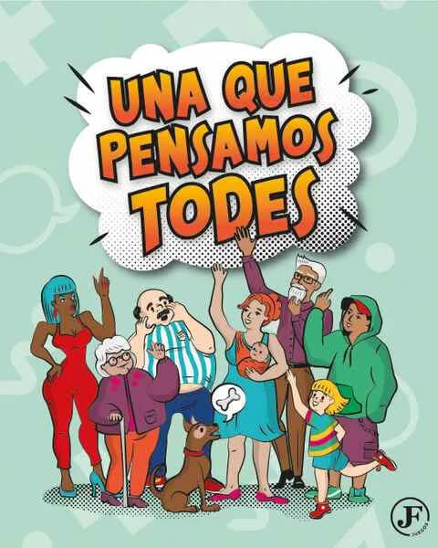 Una Que Pensamos Todes von Eugenio Carla Jerez Ferrante und Santiago Martin Jerez Ferrante ist ein Partyspiel, bei dem man eine Bildkarte und eine Wortkarte aufdeckt und dann alle eine Assoziation aufschreiben. Assoziationen, die von mehreren Leuten aufgeschrieben wurden, bringen Punkte. Der Unterschied zu Unanimo (auf Deutsch 1990 bei Ravensburger unter dem Namen Flash erschienen) ist mir noch nicht klar.