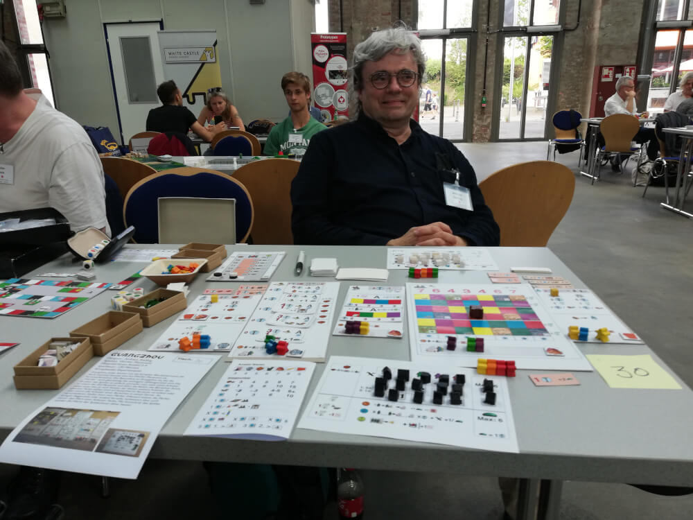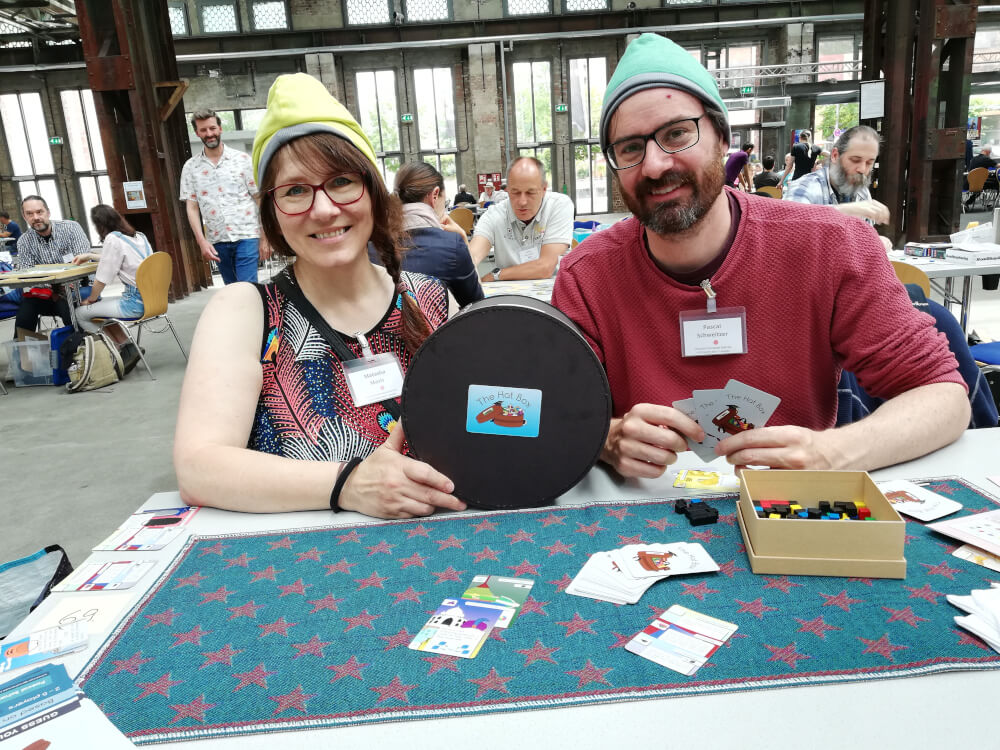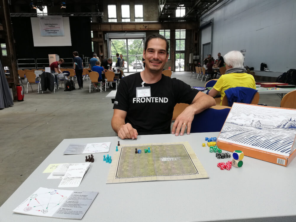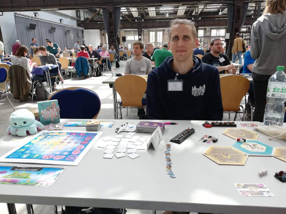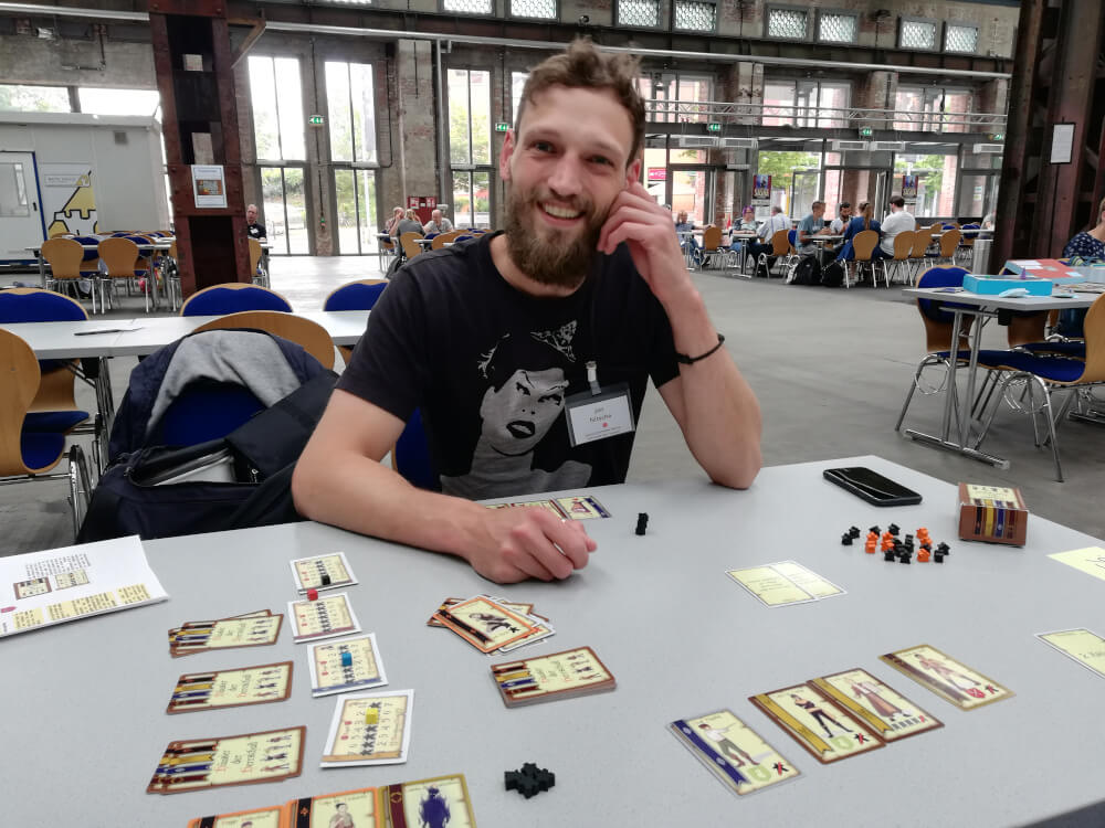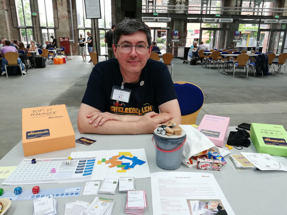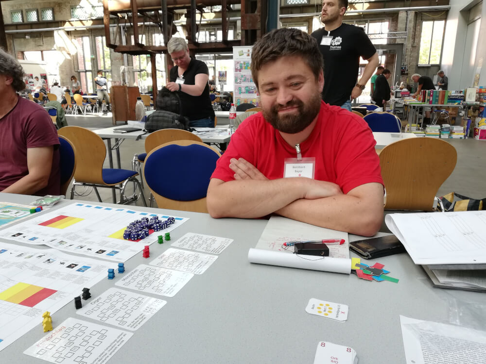 Was gibt es zu berichten? Ich werde hier nicht zu sehr über einzelne Spiele ins Detail gehen. Da ich selbst dieses Jahr nichts vorzustellen hatte, habe ich die Zeit vor allem genutzt, um alte und neue Leute zu treffen und Fotos zu machen (eine Fotogalerie folgt weiter unten). Besonders gefreut habe ich mich, dass dieses Jahr mal wieder zwei Autor:innen aus Übersee anwesend waren, nämlich aus Israel und aus Ägypten. Ägypten ist für mich noch Neuland, bisher war Nigeria das einzige afrikanische Land gewesen, in dem ich von einer blühenden Spieleszene wusste. Den Kontakt nach Ägypten möchte ich aber weiterhin pflegen, und vielleicht kommt dann ja auch noch mal ein Extra-Artikel dazu.
