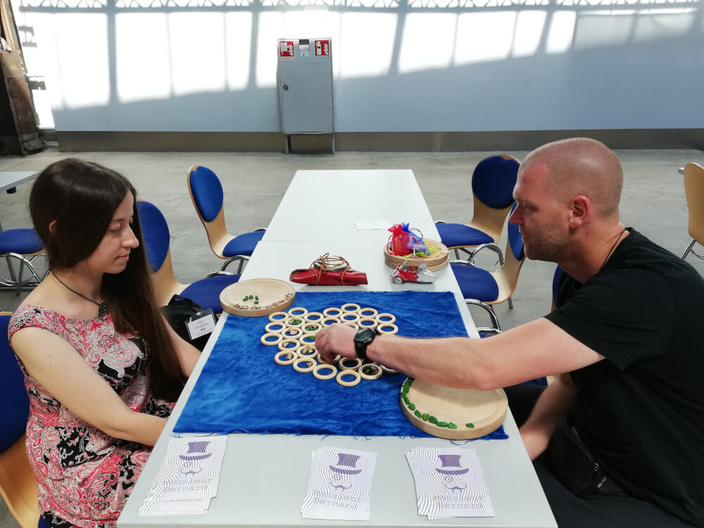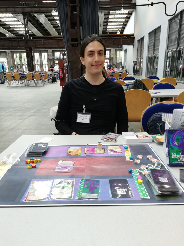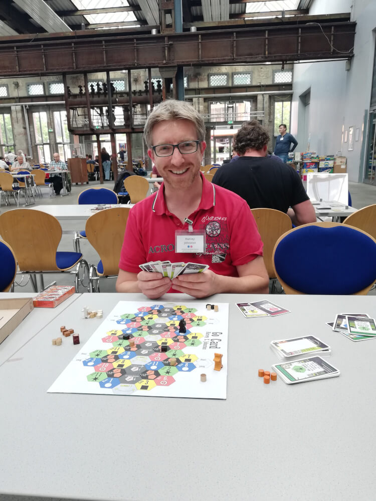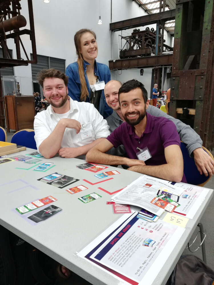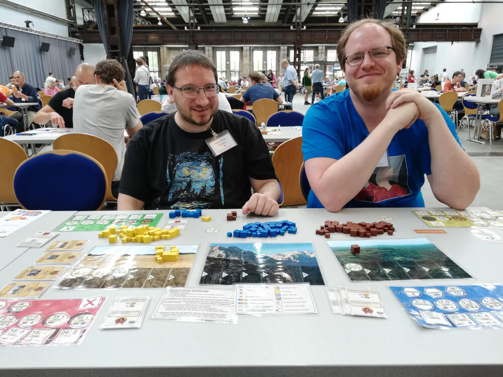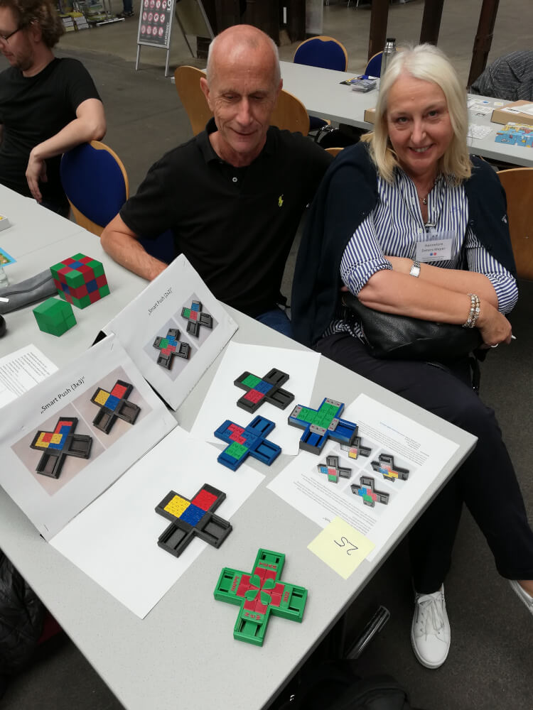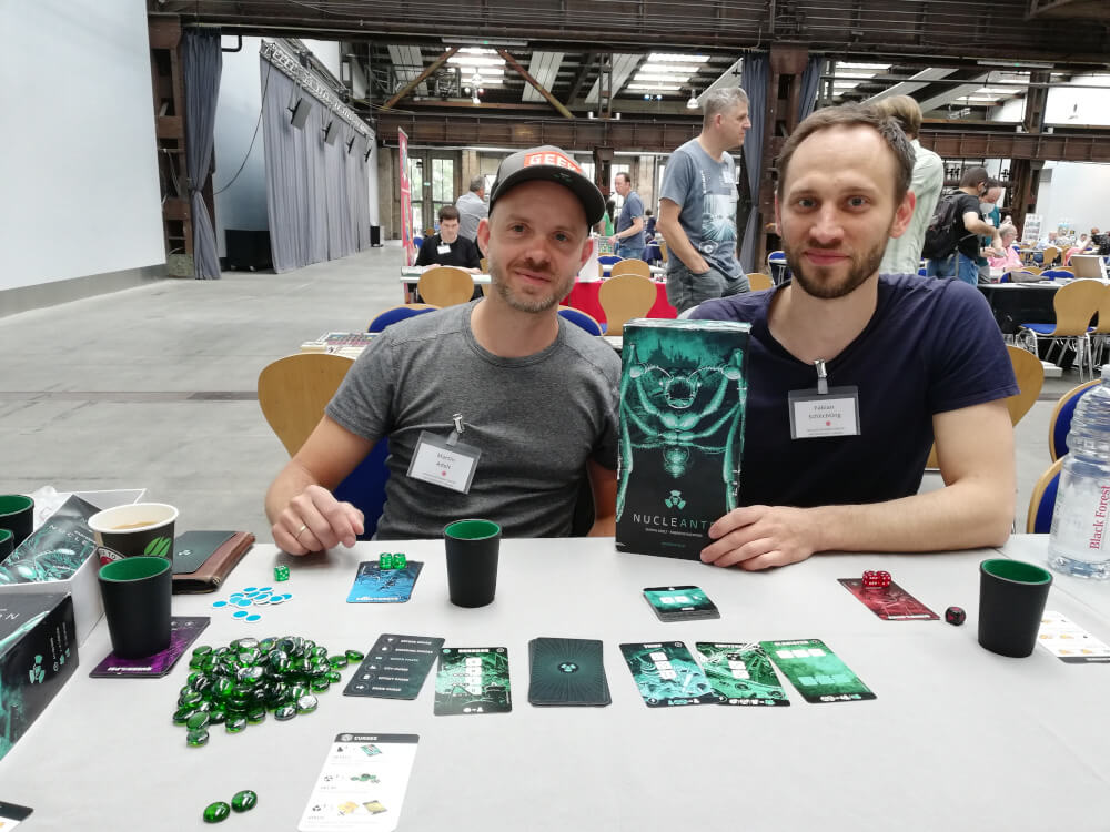 Was gibt es zu berichten? Ich werde hier nicht zu sehr über einzelne Spiele ins Detail gehen. Da ich selbst dieses Jahr nichts vorzustellen hatte, habe ich die Zeit vor allem genutzt, um alte und neue Leute zu treffen und Fotos zu machen (eine Fotogalerie folgt weiter unten). Besonders gefreut habe ich mich, dass dieses Jahr mal wieder zwei Autor:innen aus Übersee anwesend waren, nämlich aus Israel und aus Ägypten. Ägypten ist für mich noch Neuland, bisher war Nigeria das einzige afrikanische Land gewesen, in dem ich von einer blühenden Spieleszene wusste. Den Kontakt nach Ägypten möchte ich aber weiterhin pflegen, und vielleicht kommt dann ja auch noch mal ein Extra-Artikel dazu.